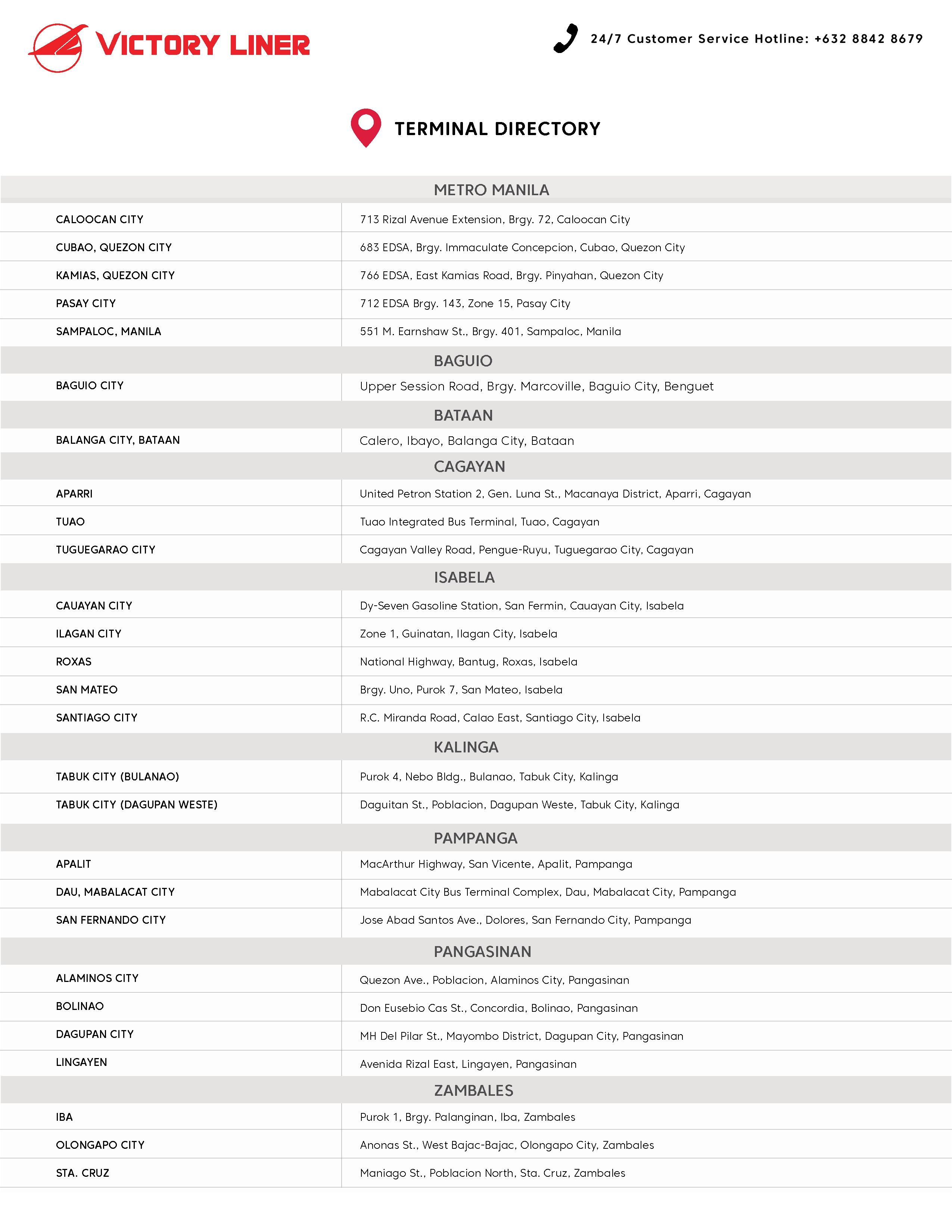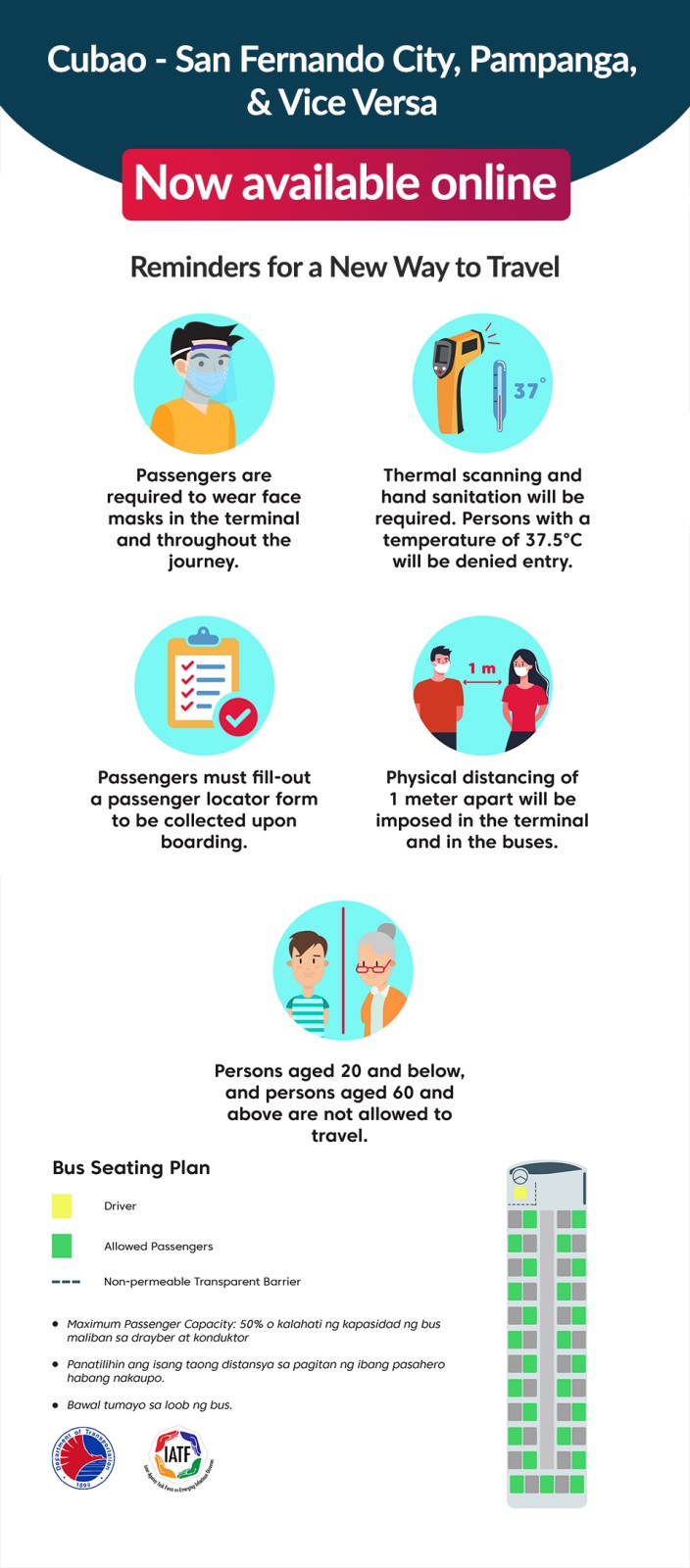 * Passengers availing student discounts, senior citizen discounts and PWD discounts must purchase their tickets from our terminal ticket booths.